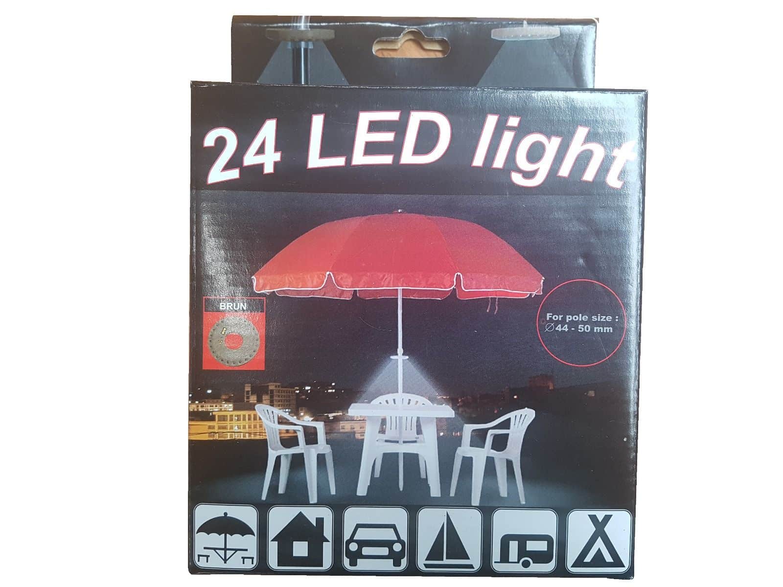 Kan let monteres på parasolstænger, med en diameter fra 44 til 50 mm.