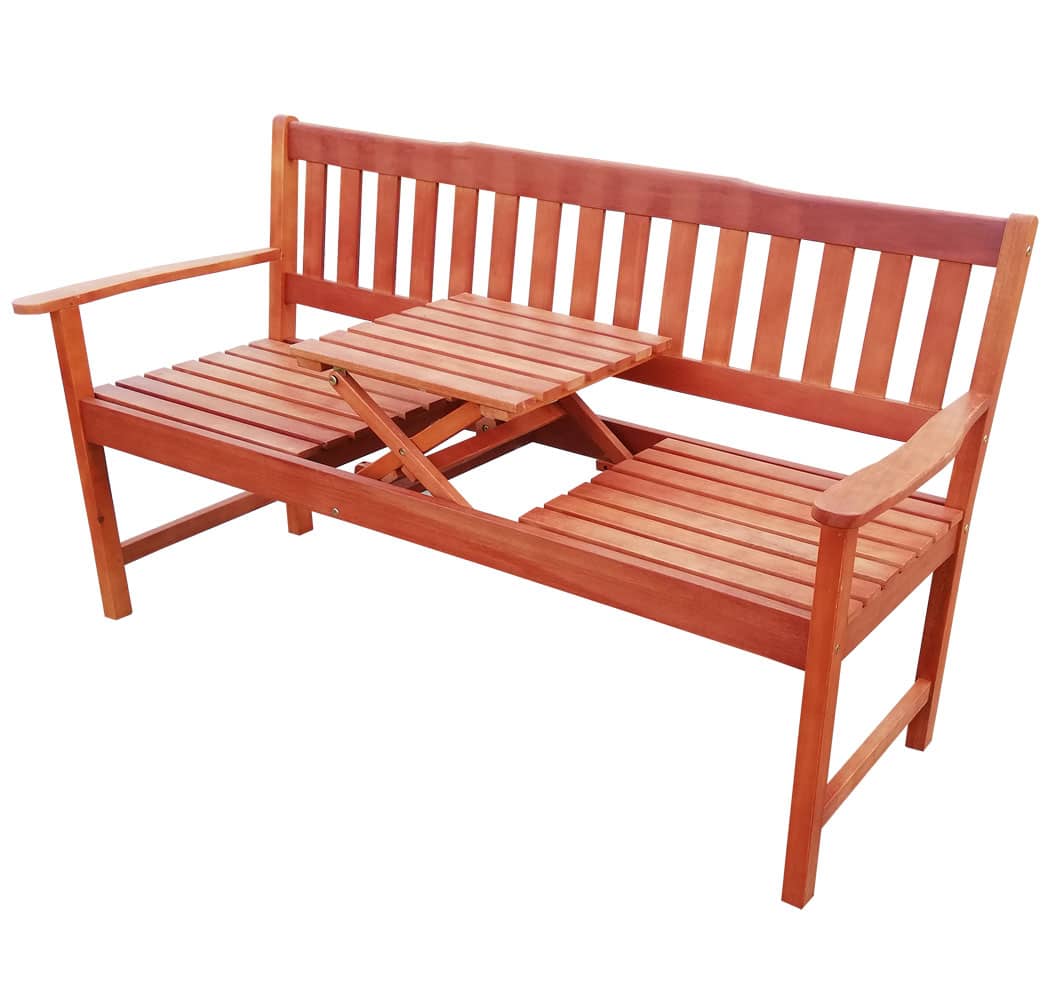3-Personers Havebænk I Eukalyptus Med Indbygget Bord.