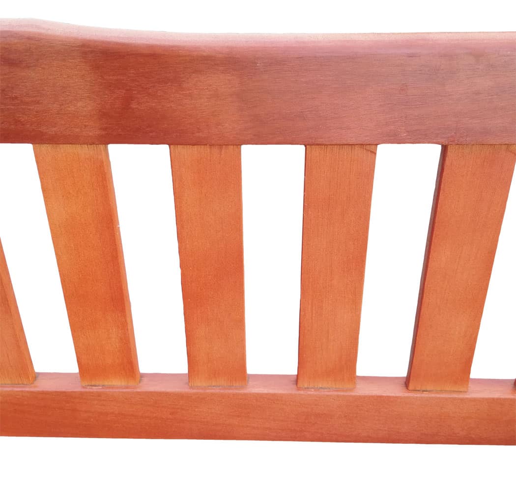 Oliebehandling: Efter rengøring vil træets fibre rejse sig hvorfor en let slibning er påkrævet. Efter slibning skal bænken oliebehandles med ædeltræs olie for at genopfriske den flotte gyldne farve og forstærke beskyttelsen mod vind og vejr.