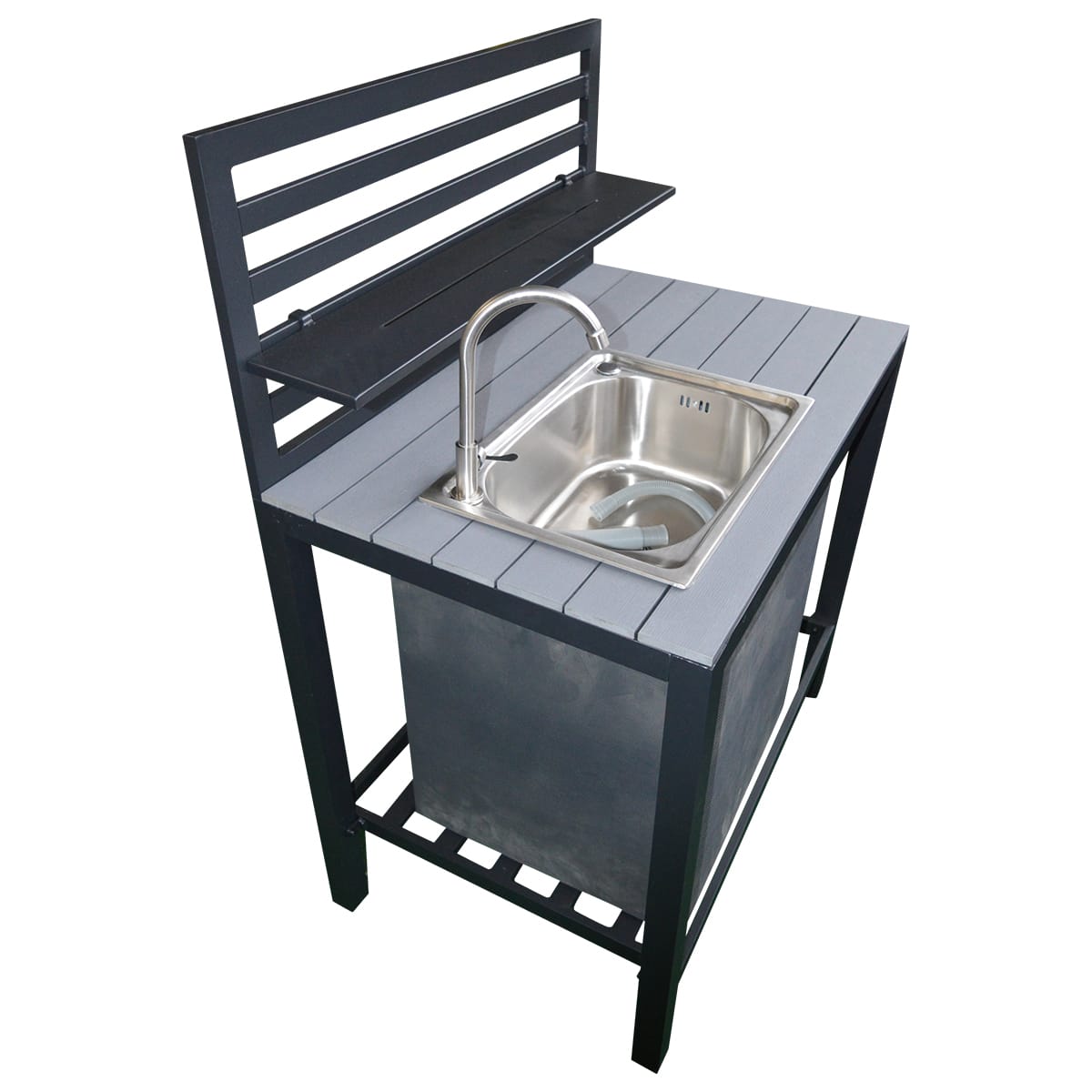 På den måde kan du tilpasse din udendørs madlavning til netop dine ønsker og pladsforhold, hvilket giver dig mulighed for at skabe det perfekte udendørs køkkenmiljø. Det robuste materiale sikrer langvarig holdbarhed, uanset vejrlig, og det moderne design passer ind i de fleste udendørsarealer.