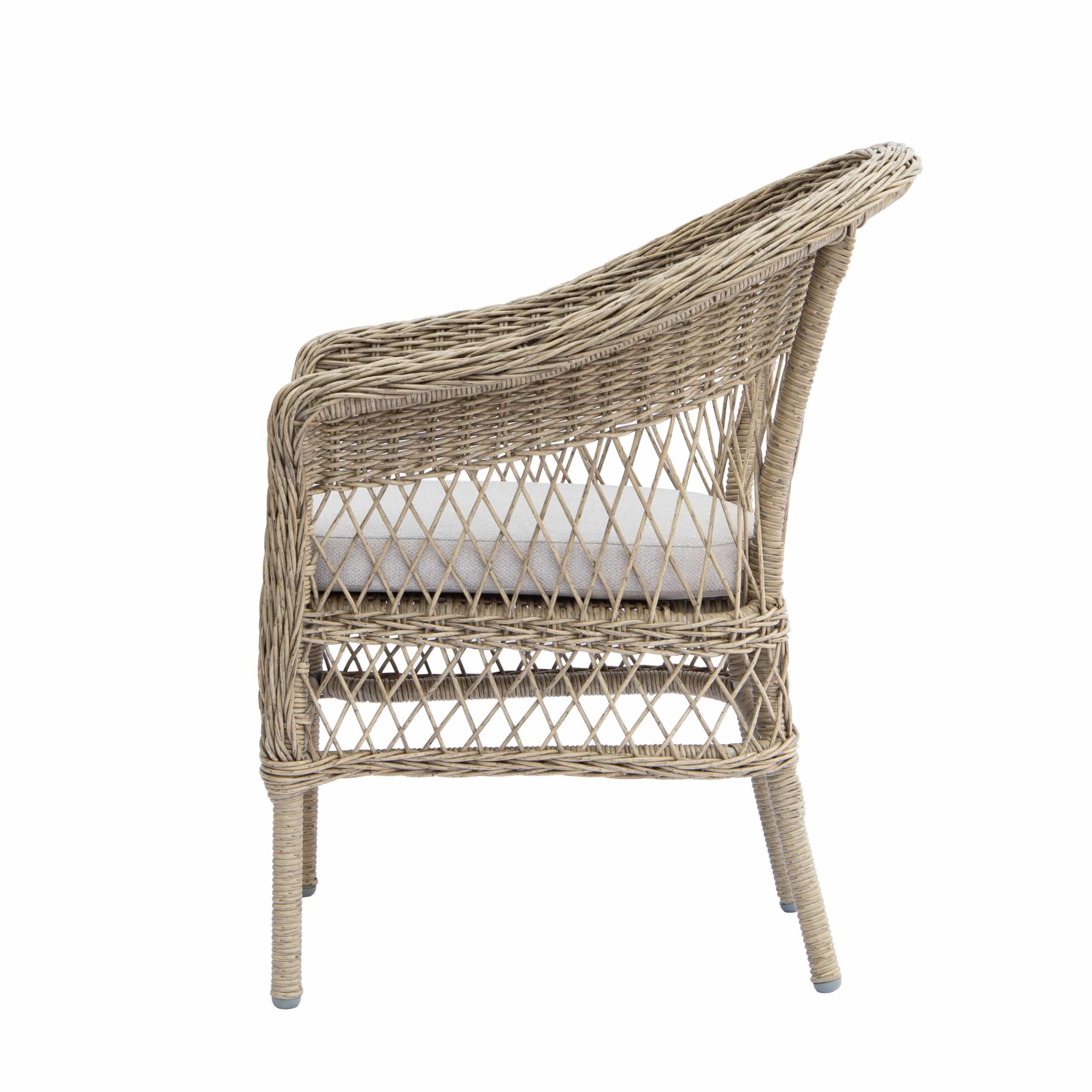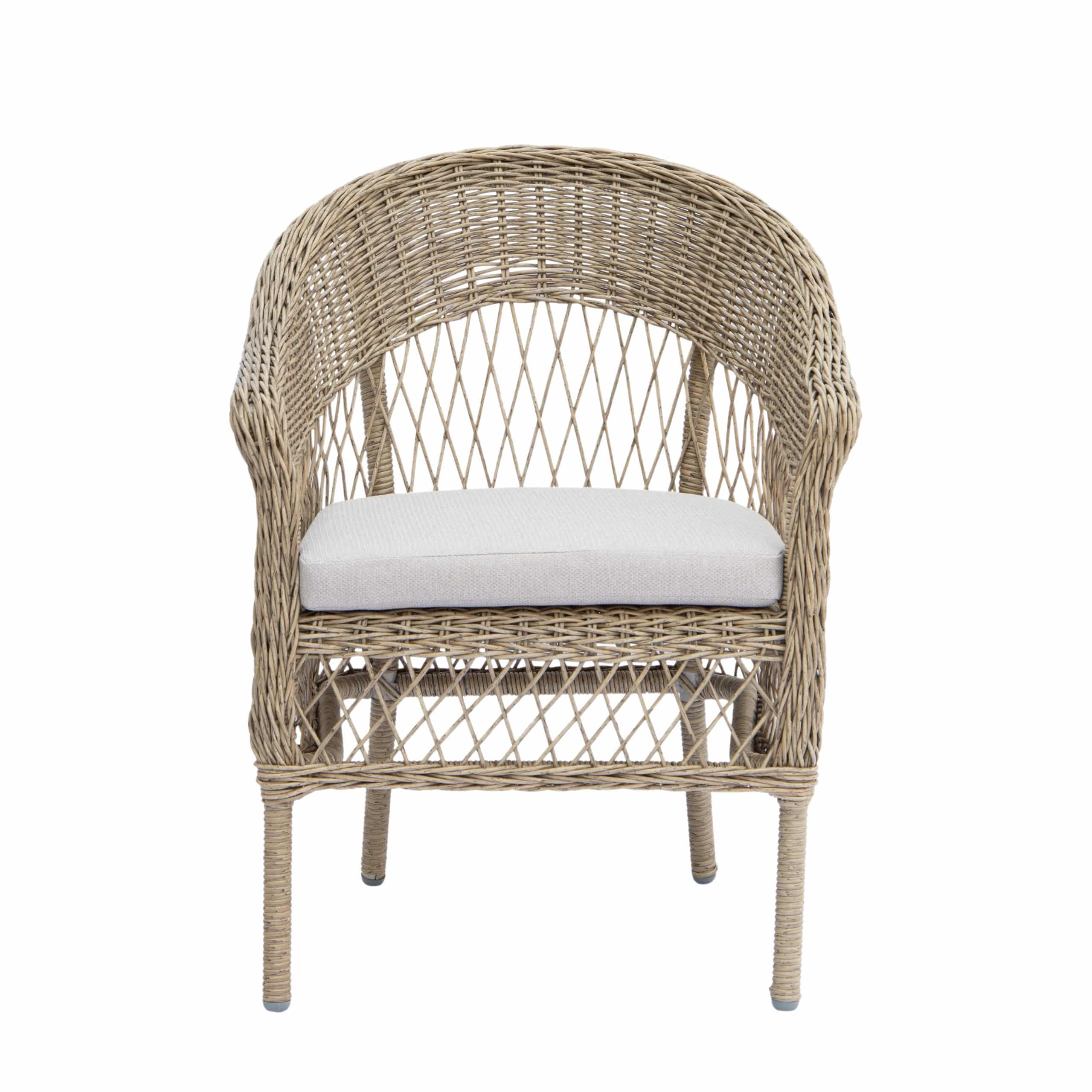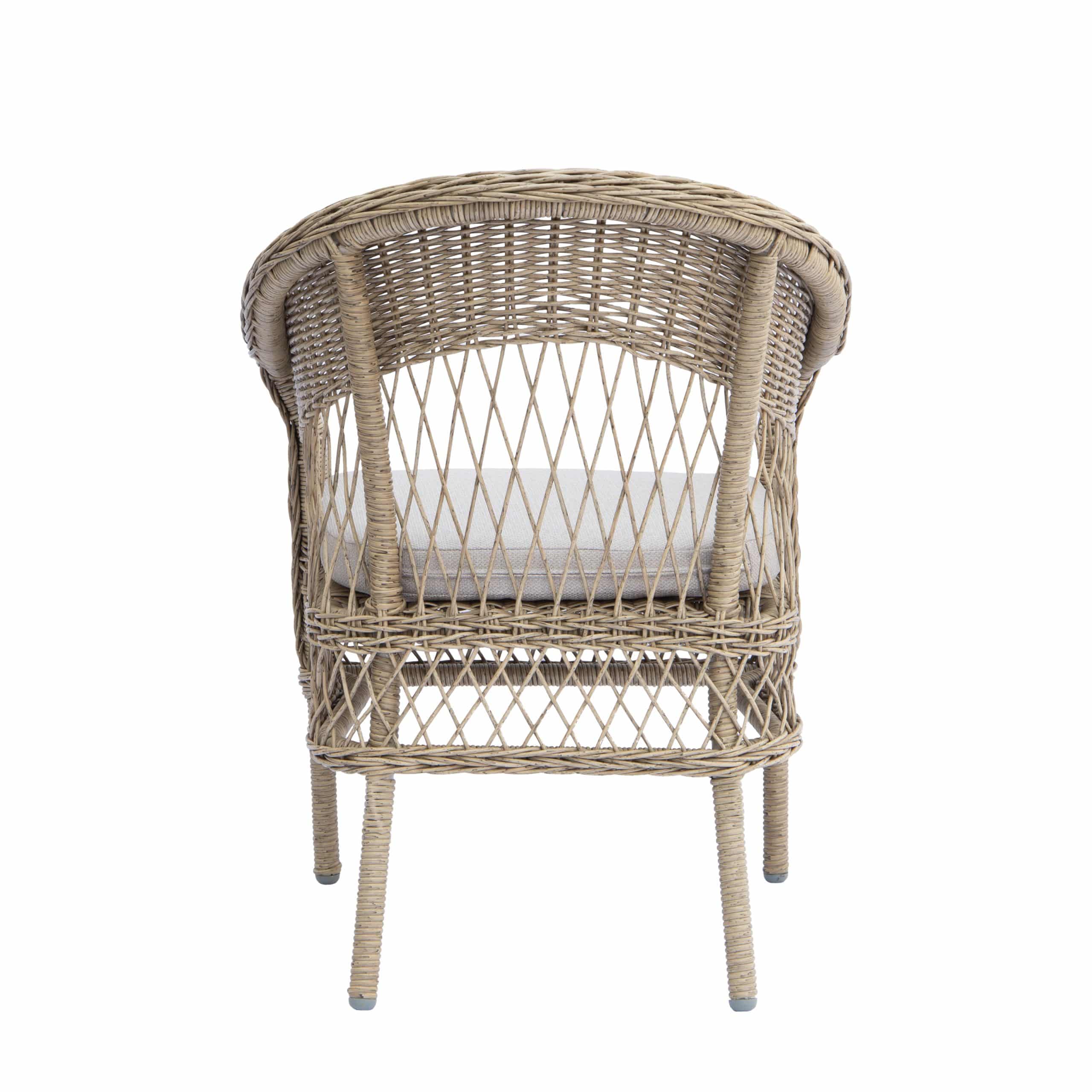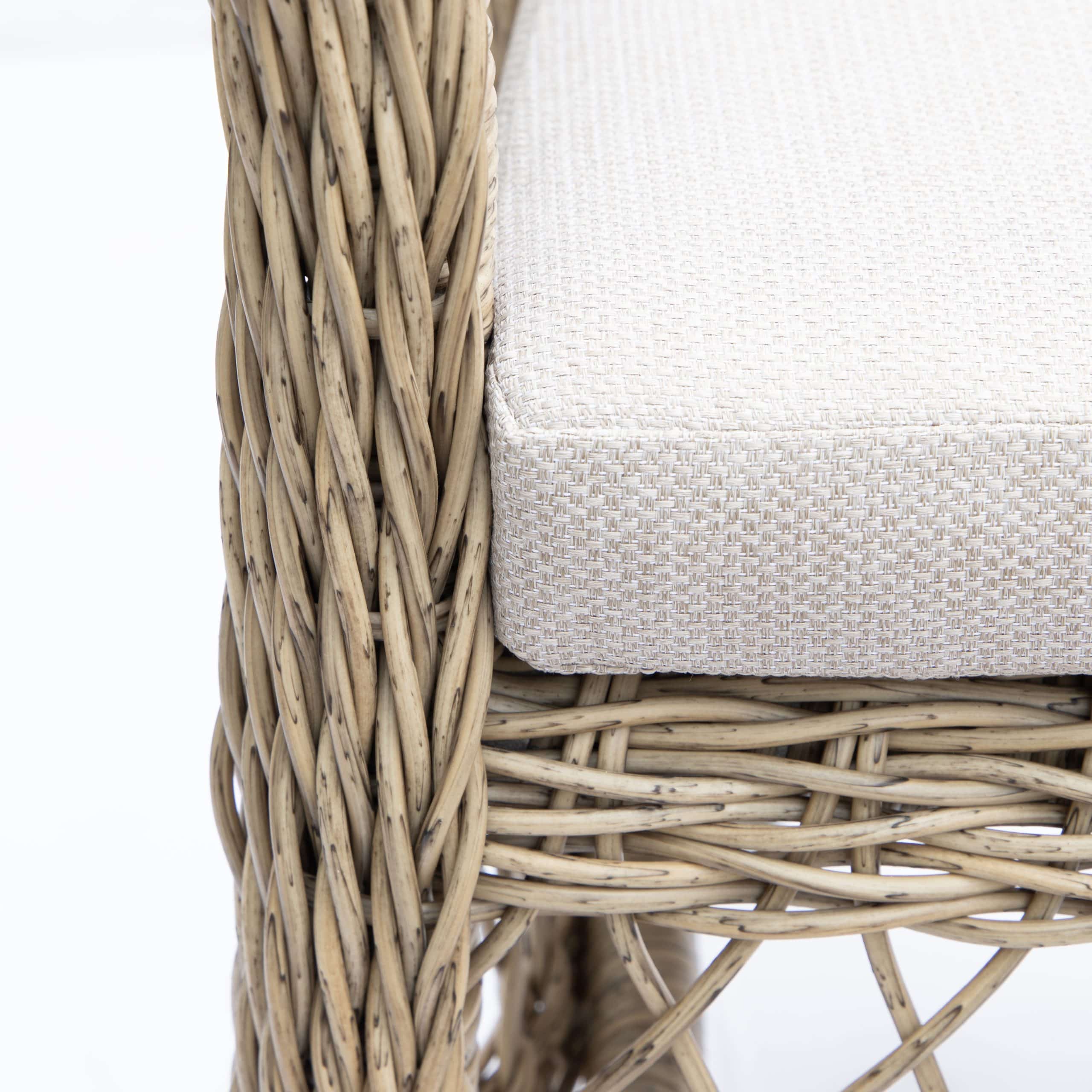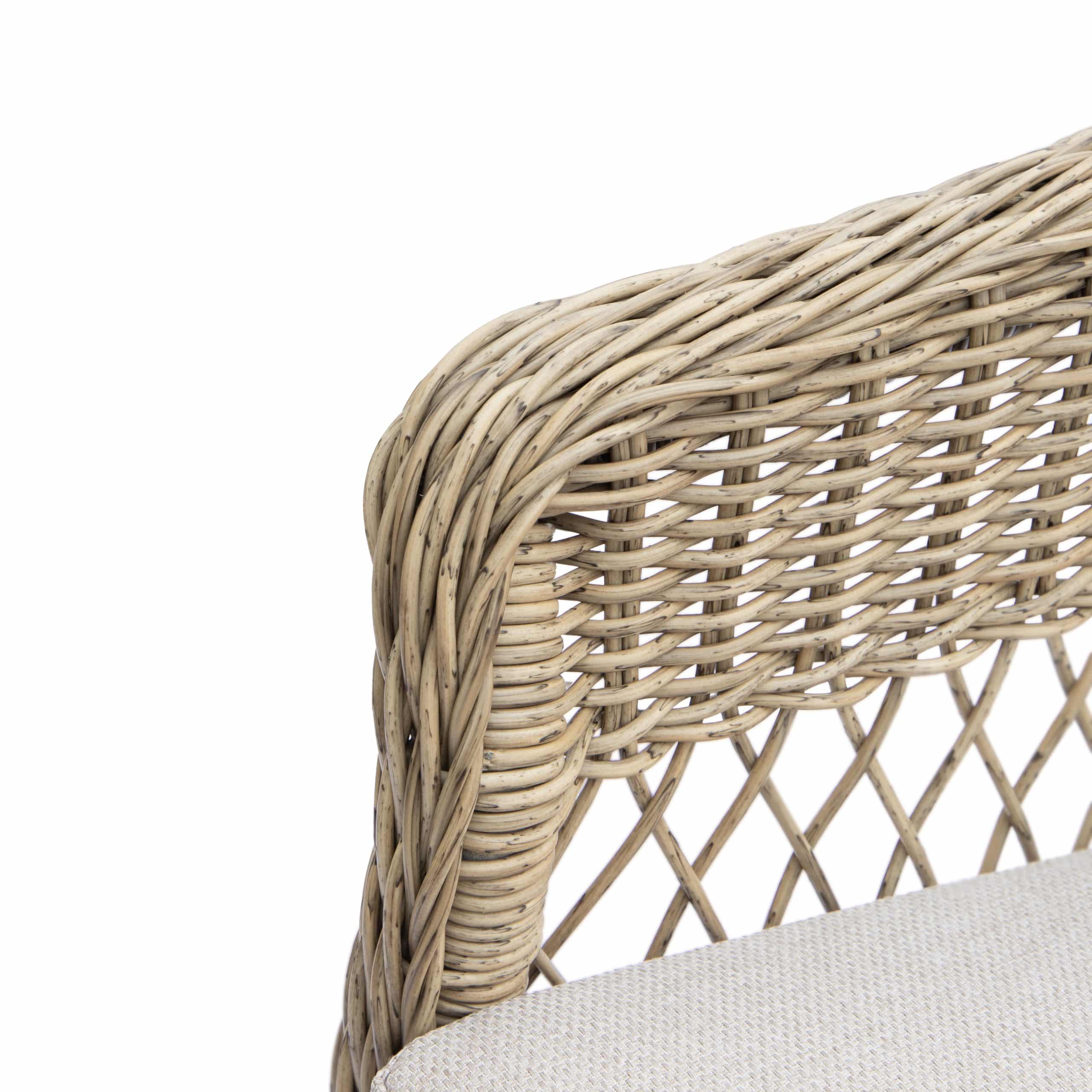 Stole og bord er med stel i aluminium omviklet med polyrattan.