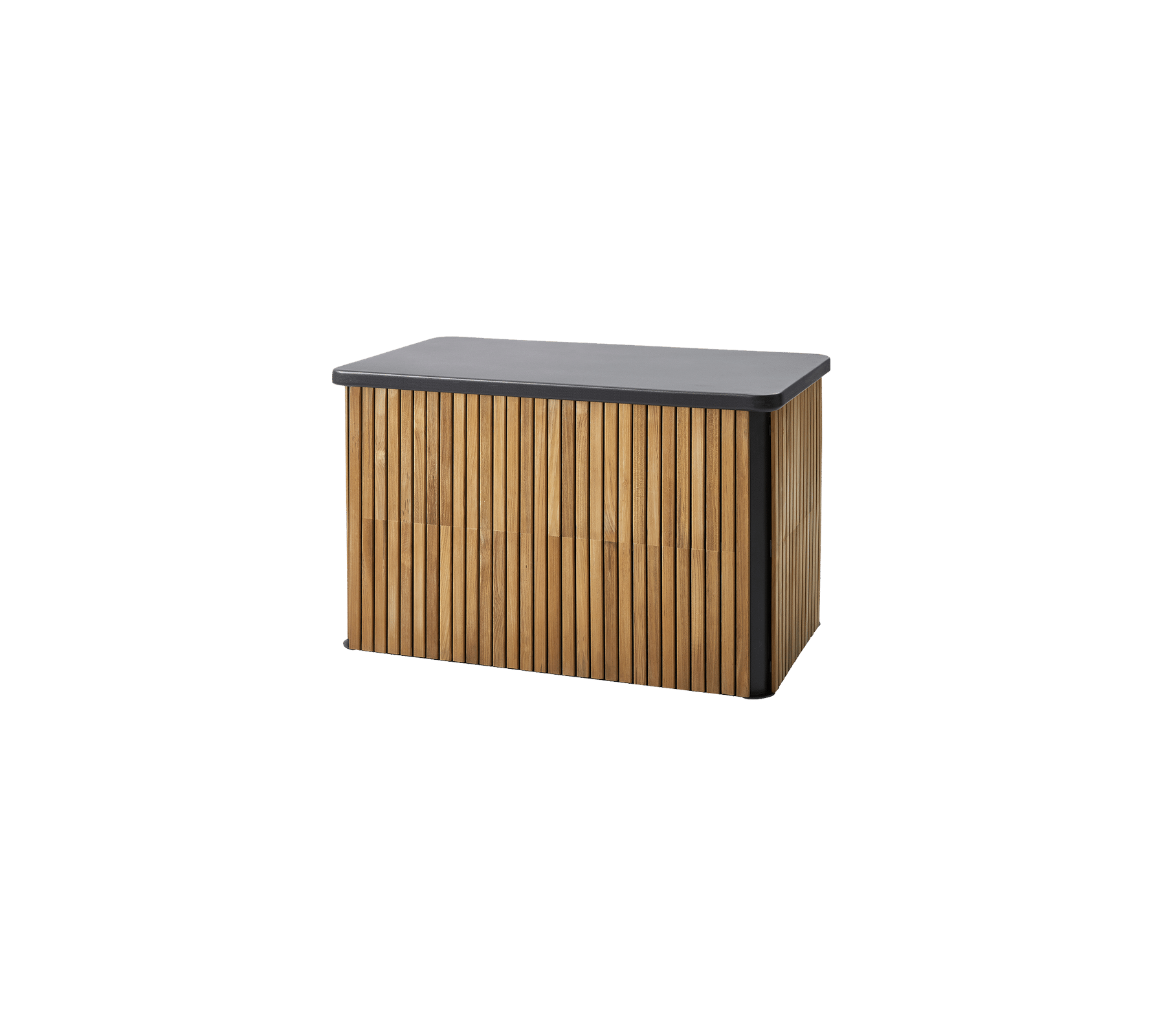 Cane-line Combine hyndeboks lille i teak og Lava Grey aluminium. Stilfuld og vejrbestandig opbevaring til hynder og tilbehør. Elegant design til terrasse og altan.