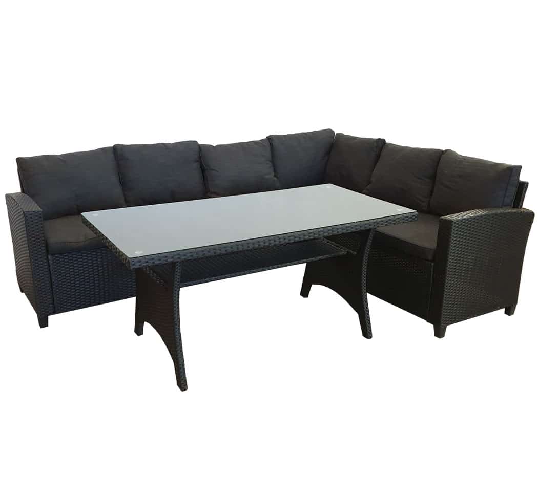 Hannover Hjørnesofa Sæt I Sort Poly-rattan Inklusive Hynder Og Bord