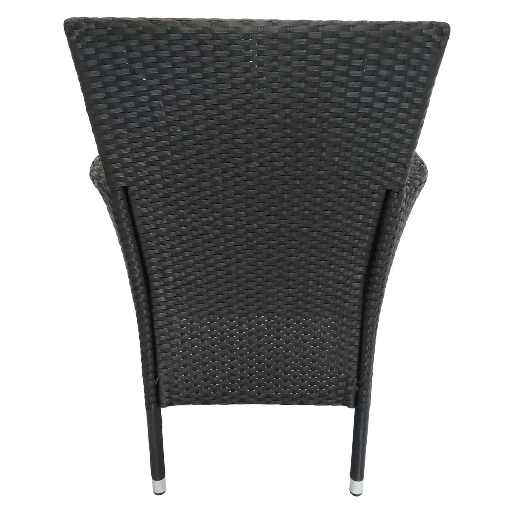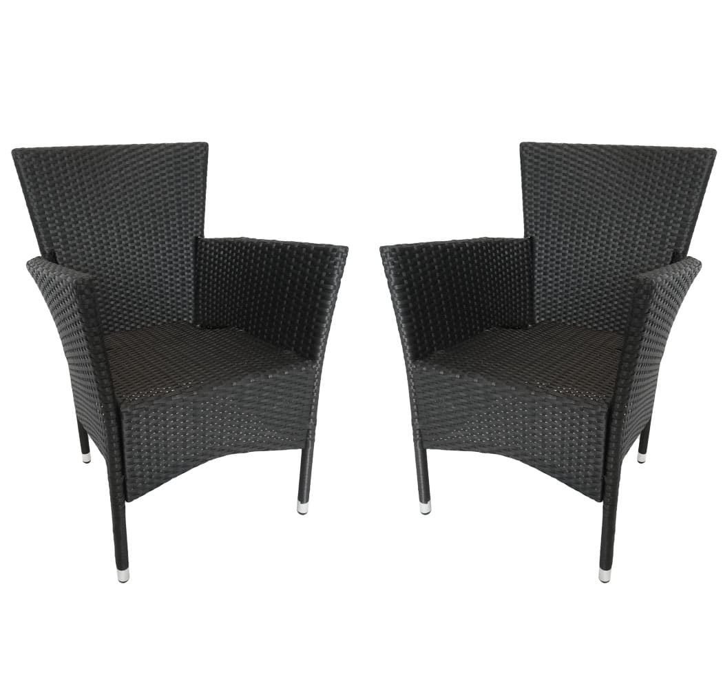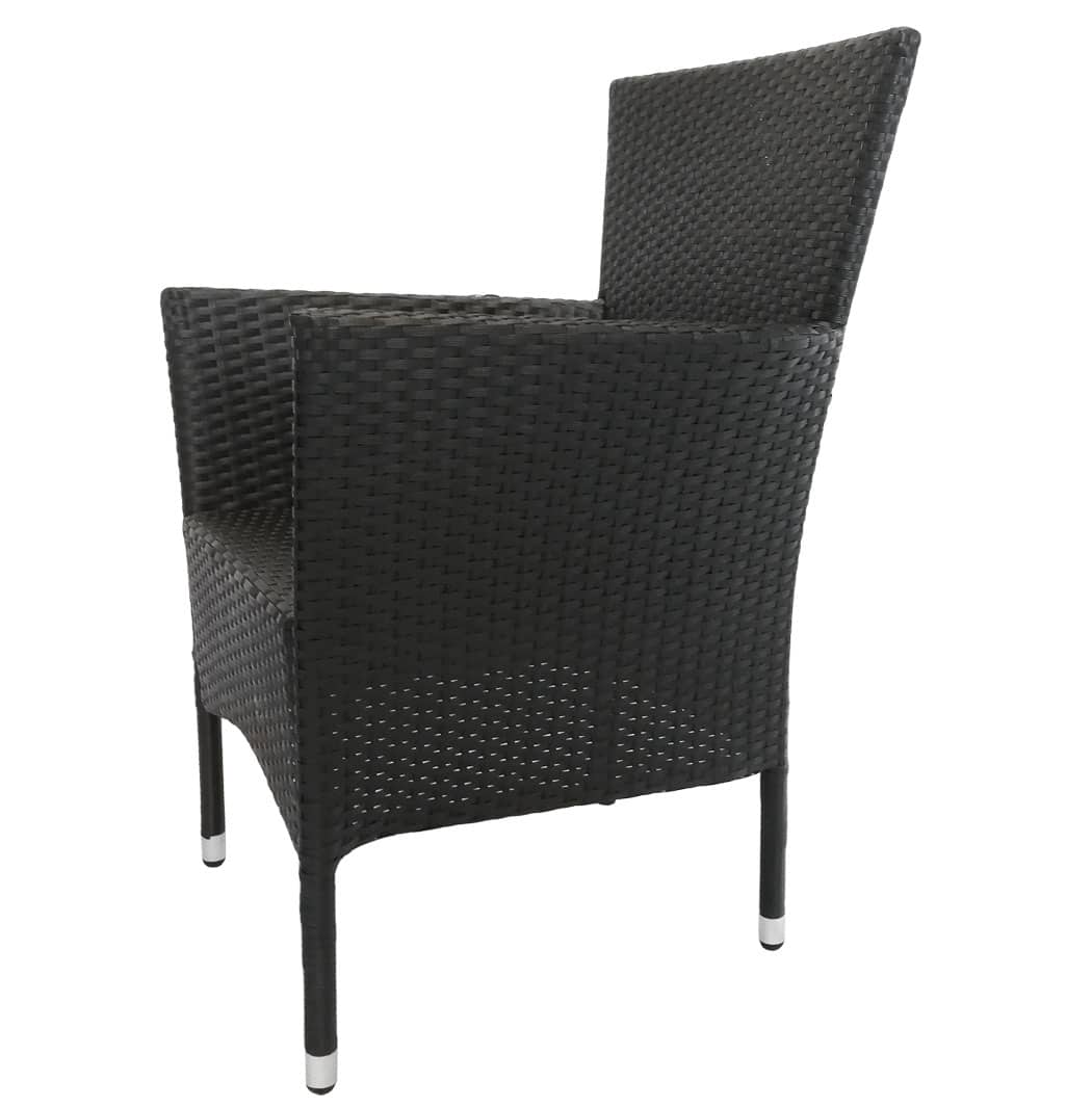 Elegant sort polyrattan havestol med mellemhøj ryg og armlæn – komfort og stil til din terrasse eller altan.