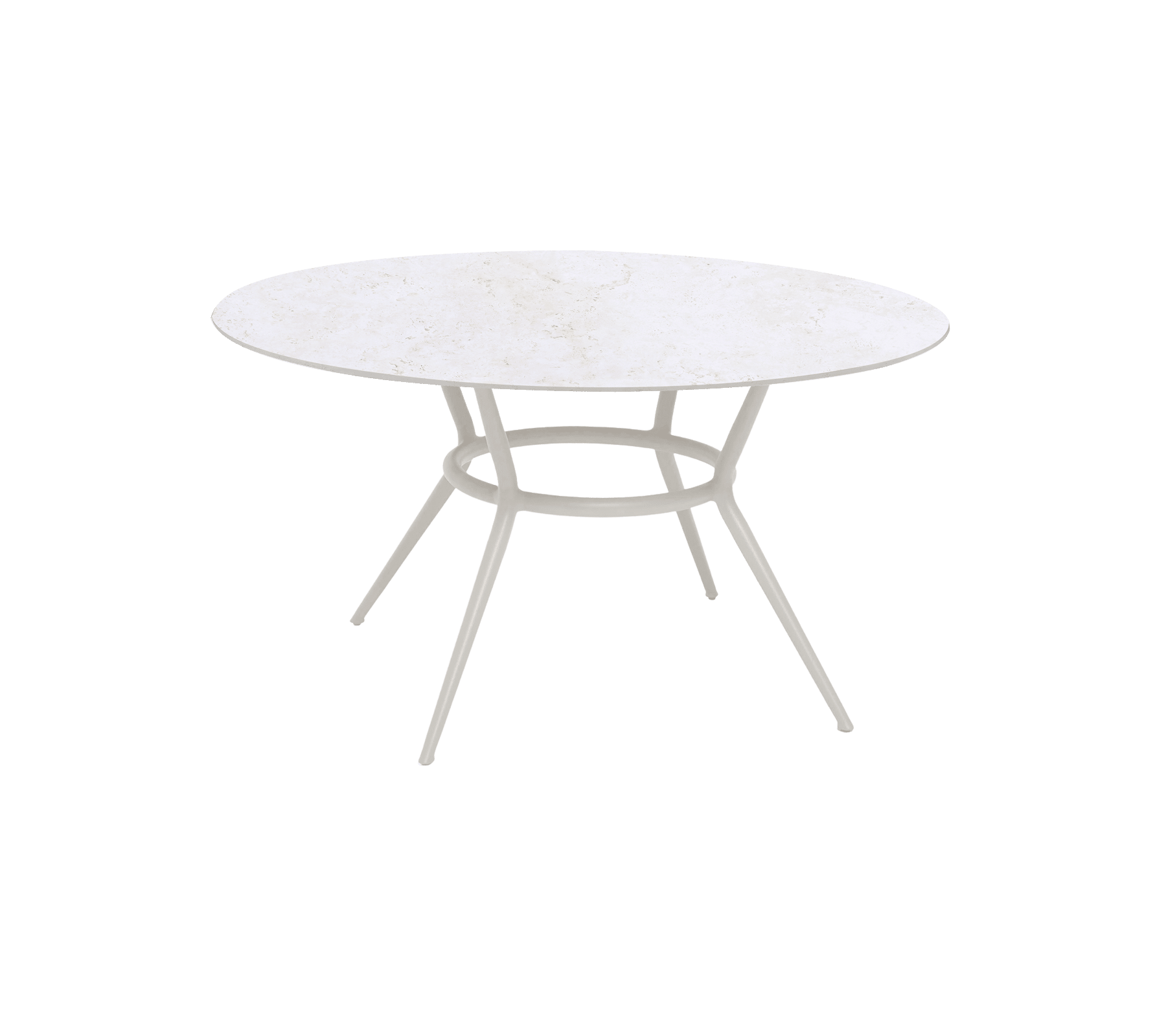Joy Spisebord Ø144 cm fra Cane-line – Rundt Havebord i Aluminium med Travertine-Look