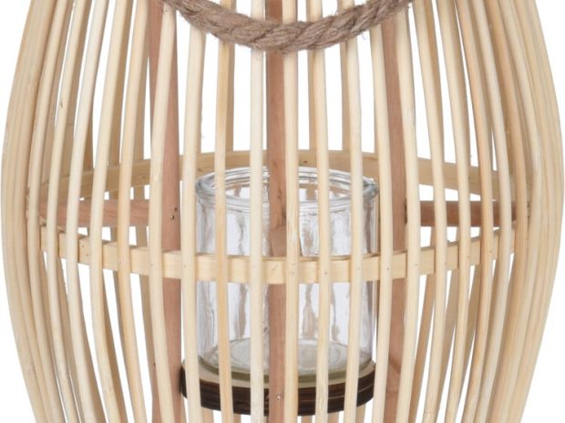 Lanternen er lavet af rattan, og har en hank i tovværk øverst, samt en glasindsats til bloklys eller fyrfadslys, der giver et smukt lysspil gennem det flettede mønster. Lanternen fås i flere størrelser.