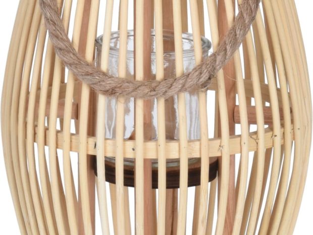 Lanternen er lavet af rattan, og har en hank i tovværk øverst, samt en glasindsats til bloklys eller fyrfadslys, der giver et smukt lysspil gennem det flettede mønster. Lanternen fås i flere størrelser.