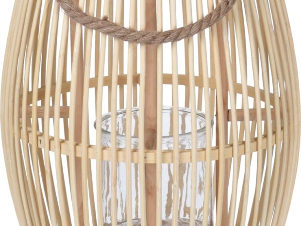 Lanternen er lavet af rattan, og har en hank i tovværk øverst, samt en glasindsats til bloklys eller fyrfadslys, der giver et smukt lysspil gennem det flettede mønster. Lanternen fås i flere størrelser.