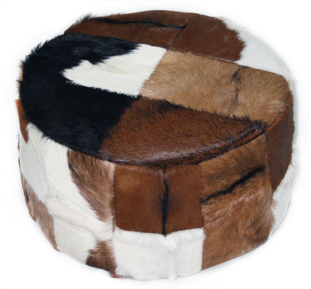 Suppler din indretning med denne Marokko puf i imiteret koskind. Med dens praktiske form kan du let flytte den ekstra siddeplads rundt til lige præcis dér hvor den giver mening.