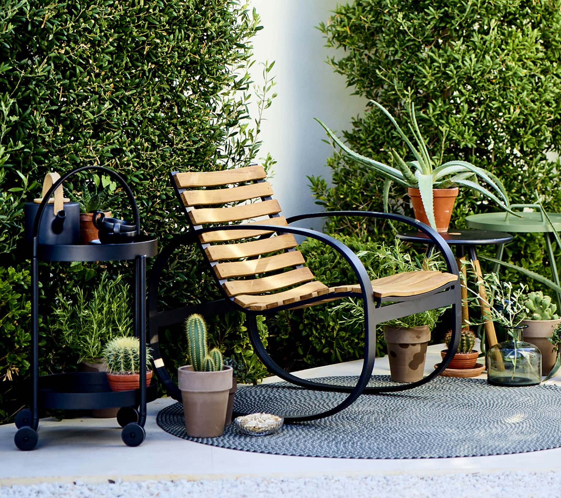Parc gyngestolen er en raffineret og eksklusiv designergyngestol i teak. Den er designet af designduoen Foersom & Hjort-Lorenzen MDD for Cane-line.