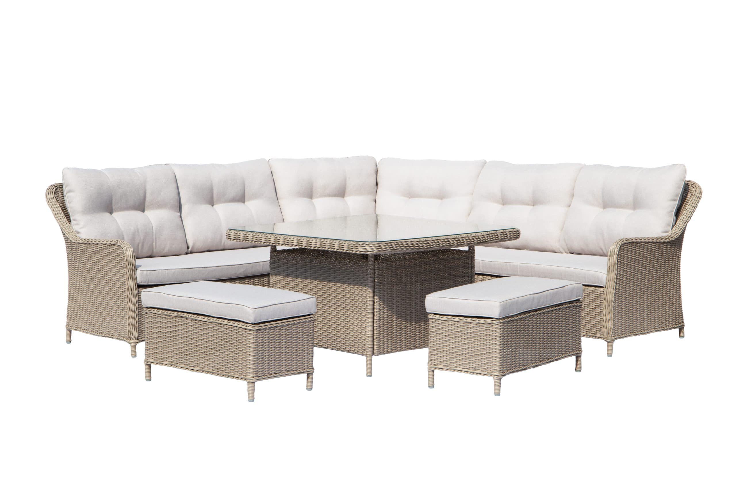 Pau hjørnesofasæt i polyrattan med spisebord & 2 ottomaner | Havemøbler