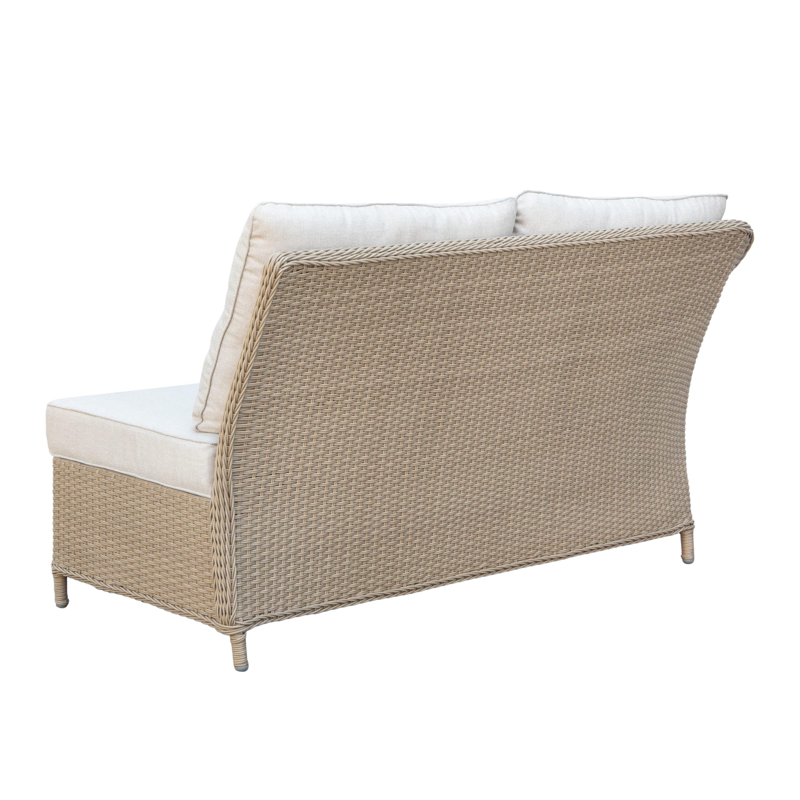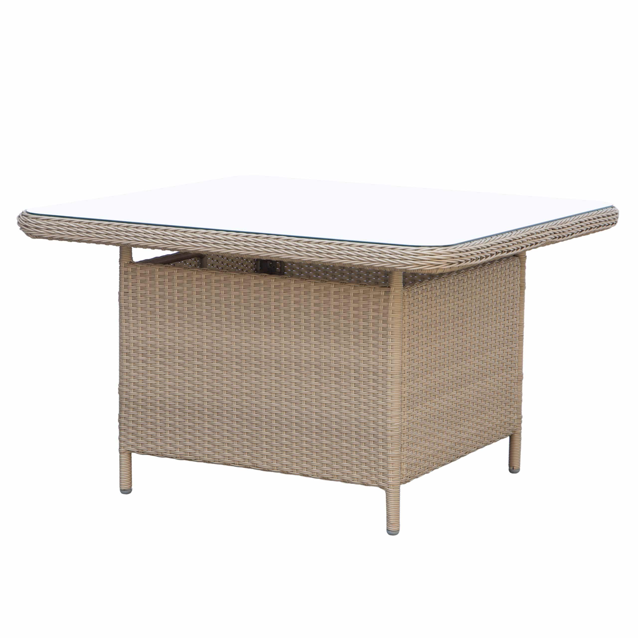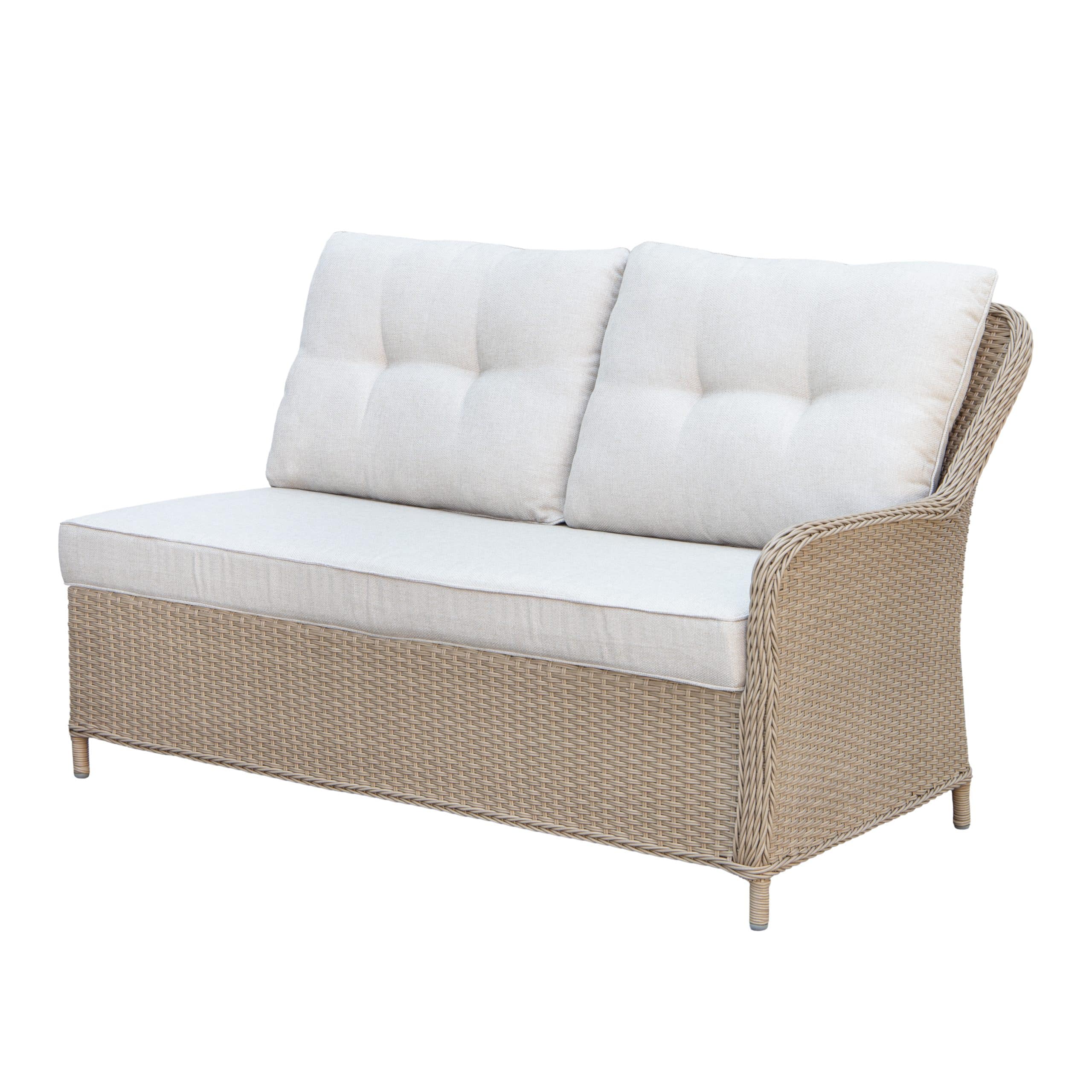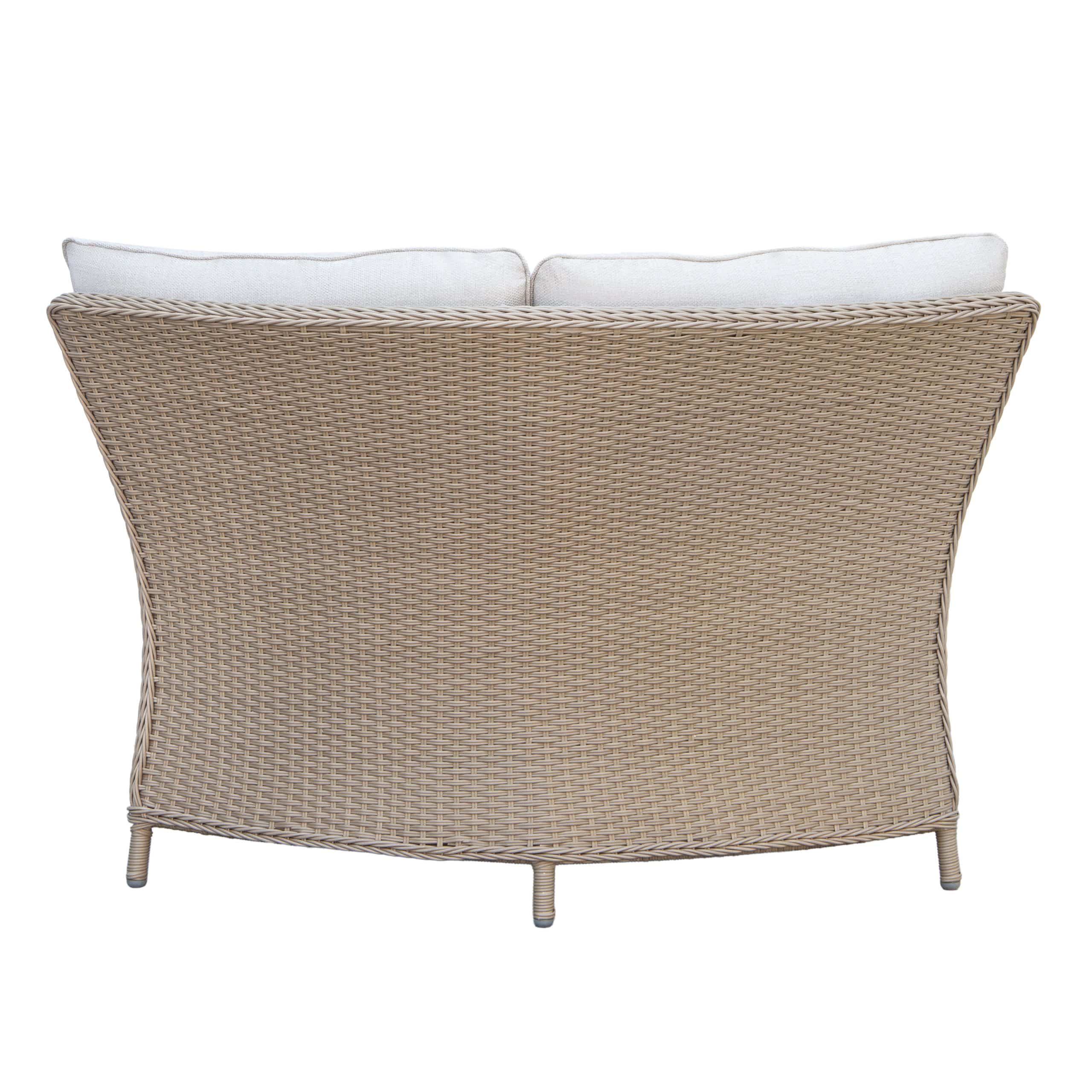 Sættet er fremstillet med et robust aluminiumstel, som sikrer lang levetid og minimal vedligeholdelse. Det er beklædt med slidstærkt sandfarvet polyrattan flet, der giver et naturligt og tidløst look, som passer ind i enhver have eller terrasse.
