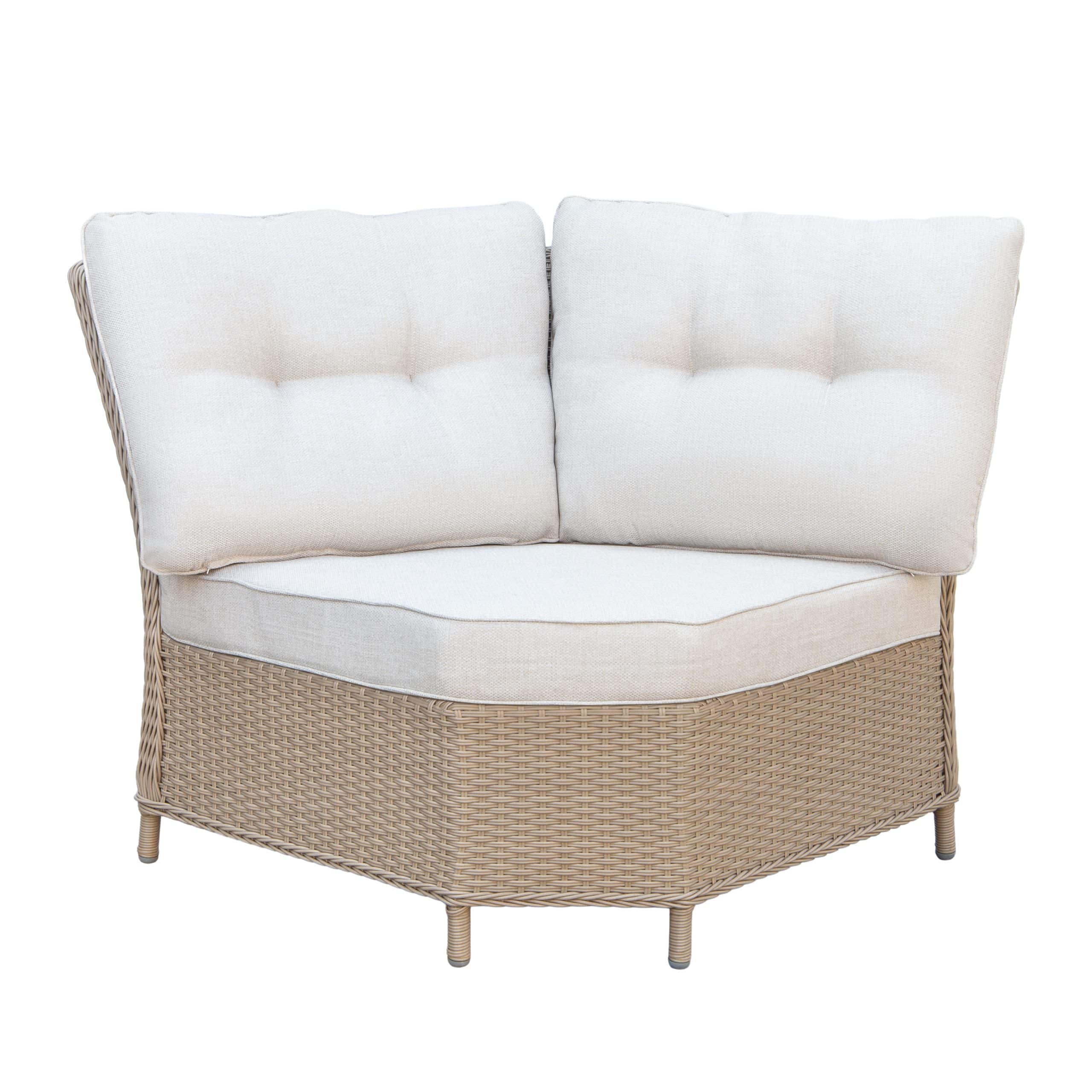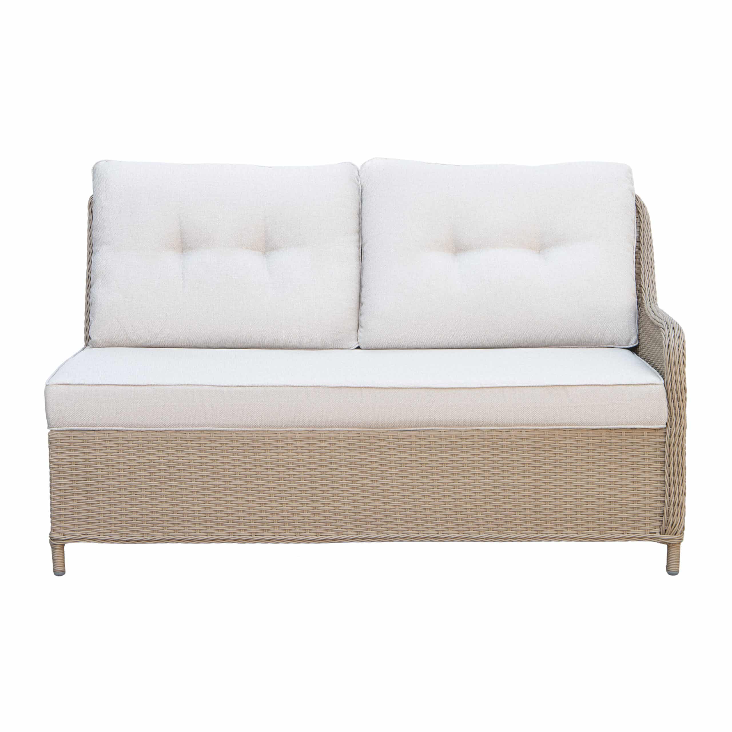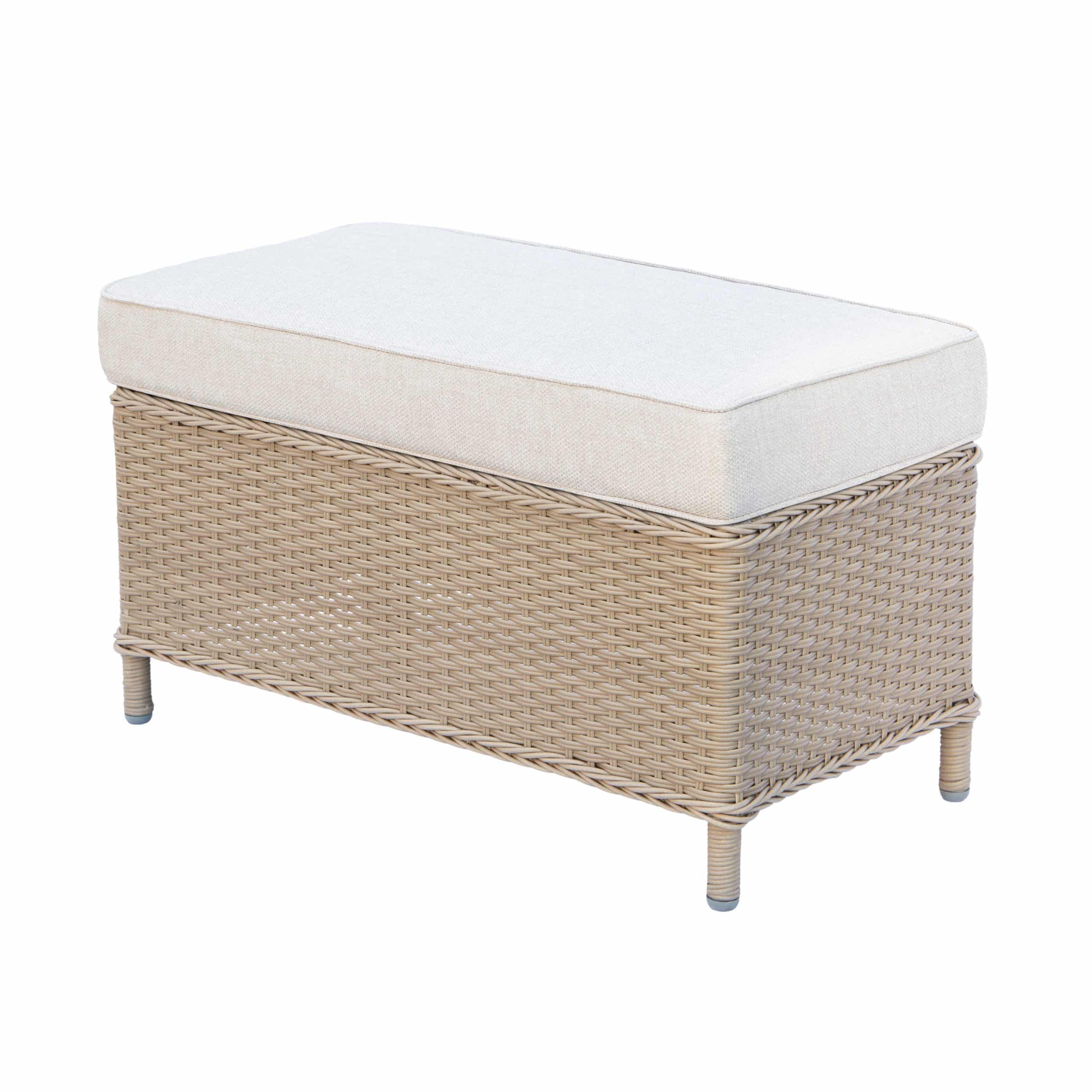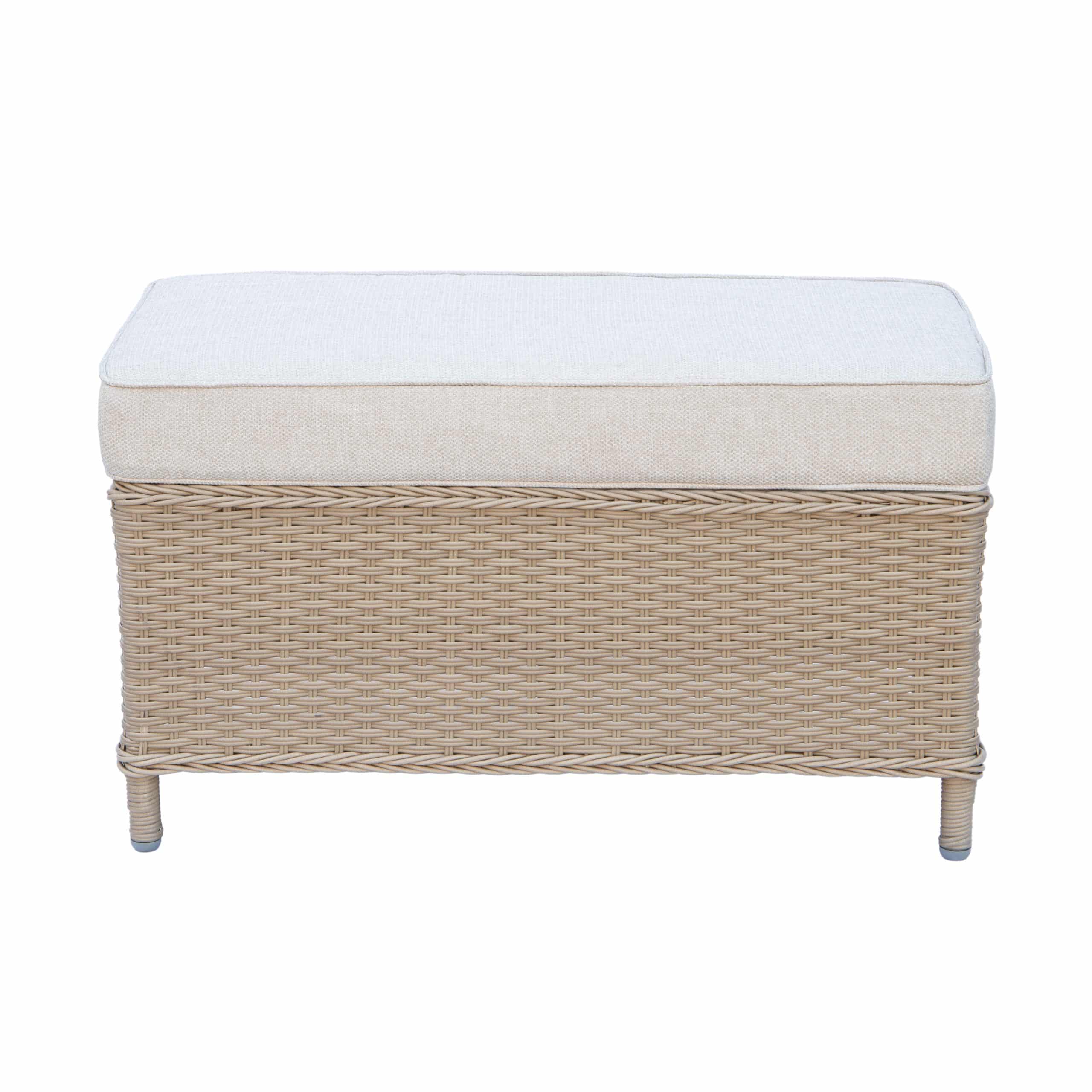 Sættet er fremstillet med et robust aluminiumstel, som sikrer lang levetid og minimal vedligeholdelse. Det er beklædt med slidstærkt sandfarvet polyrattan flet, der giver et naturligt og tidløst look, som passer ind i enhver have eller terrasse.