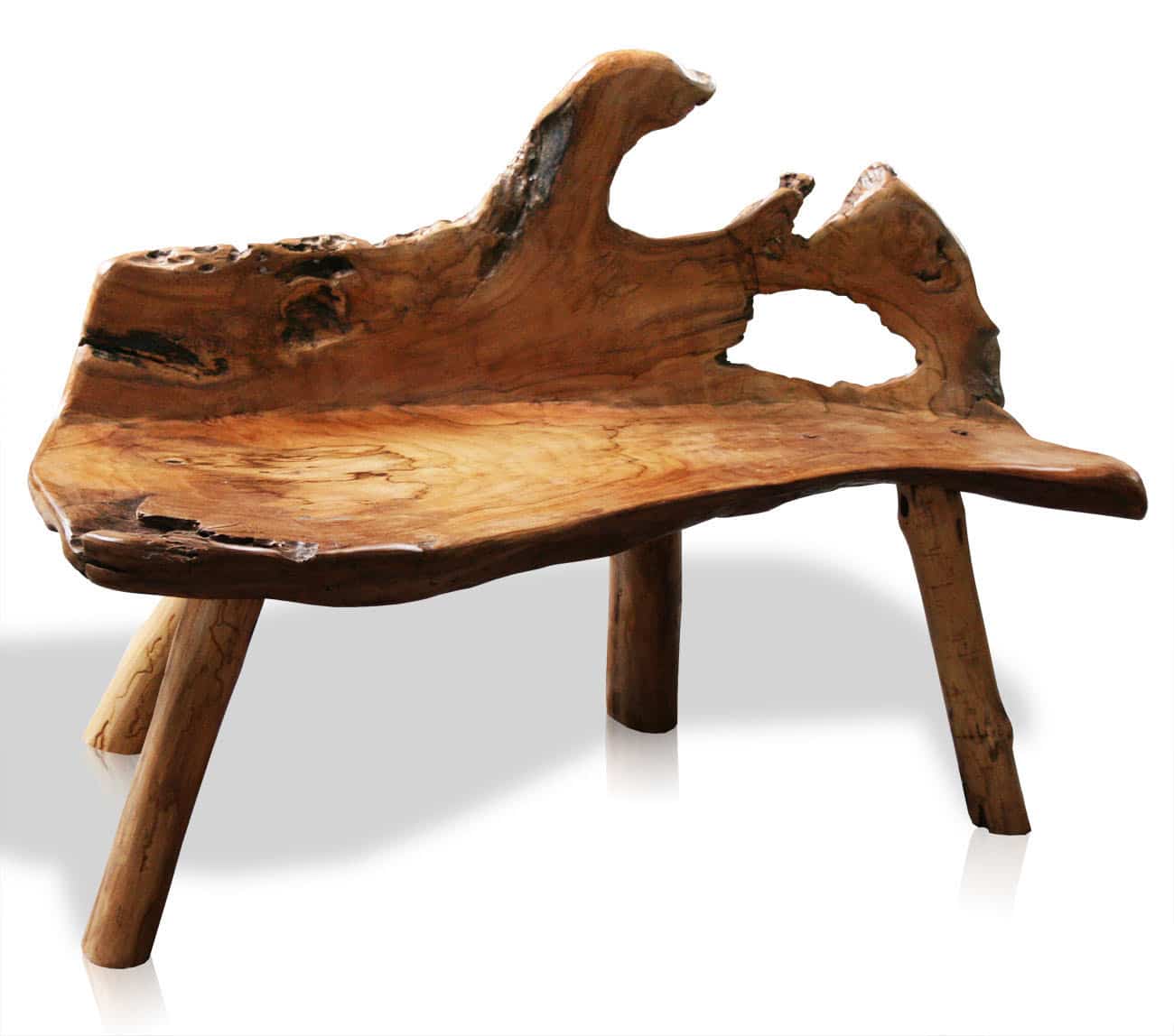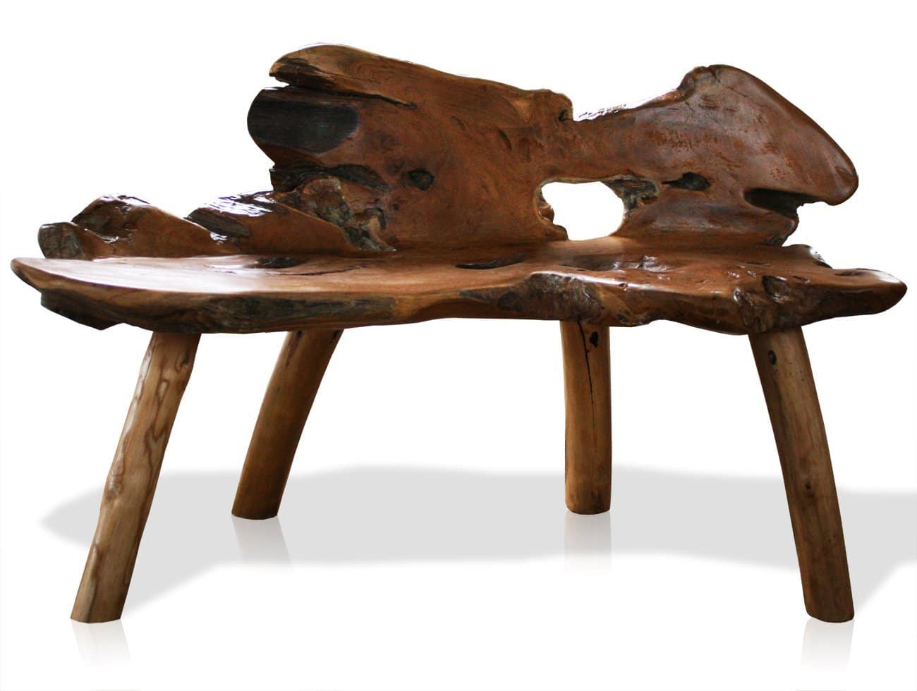 Rodbænk fremstillet af naturlig trærod. Hvert møbel er unikt og kombinerer kunstnerisk design med komfort – perfekt til stue, lounge eller terrasse.