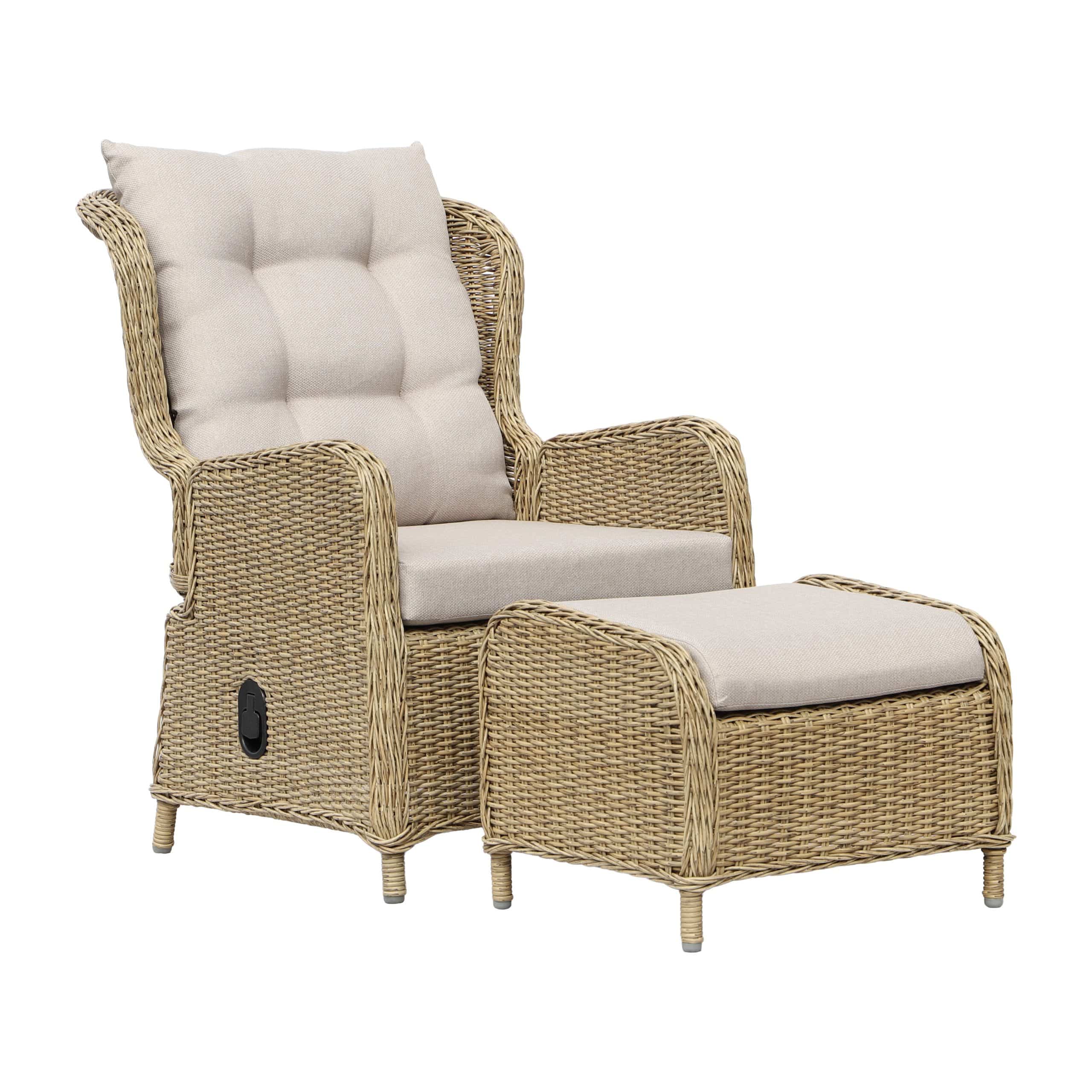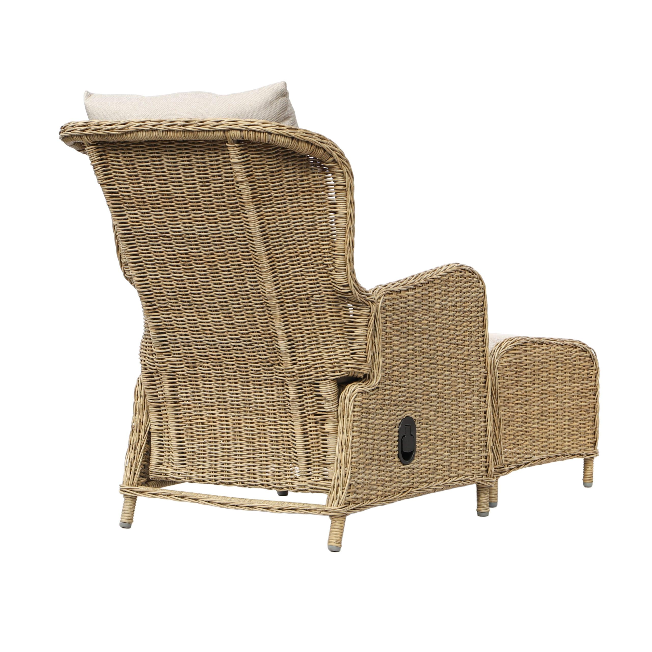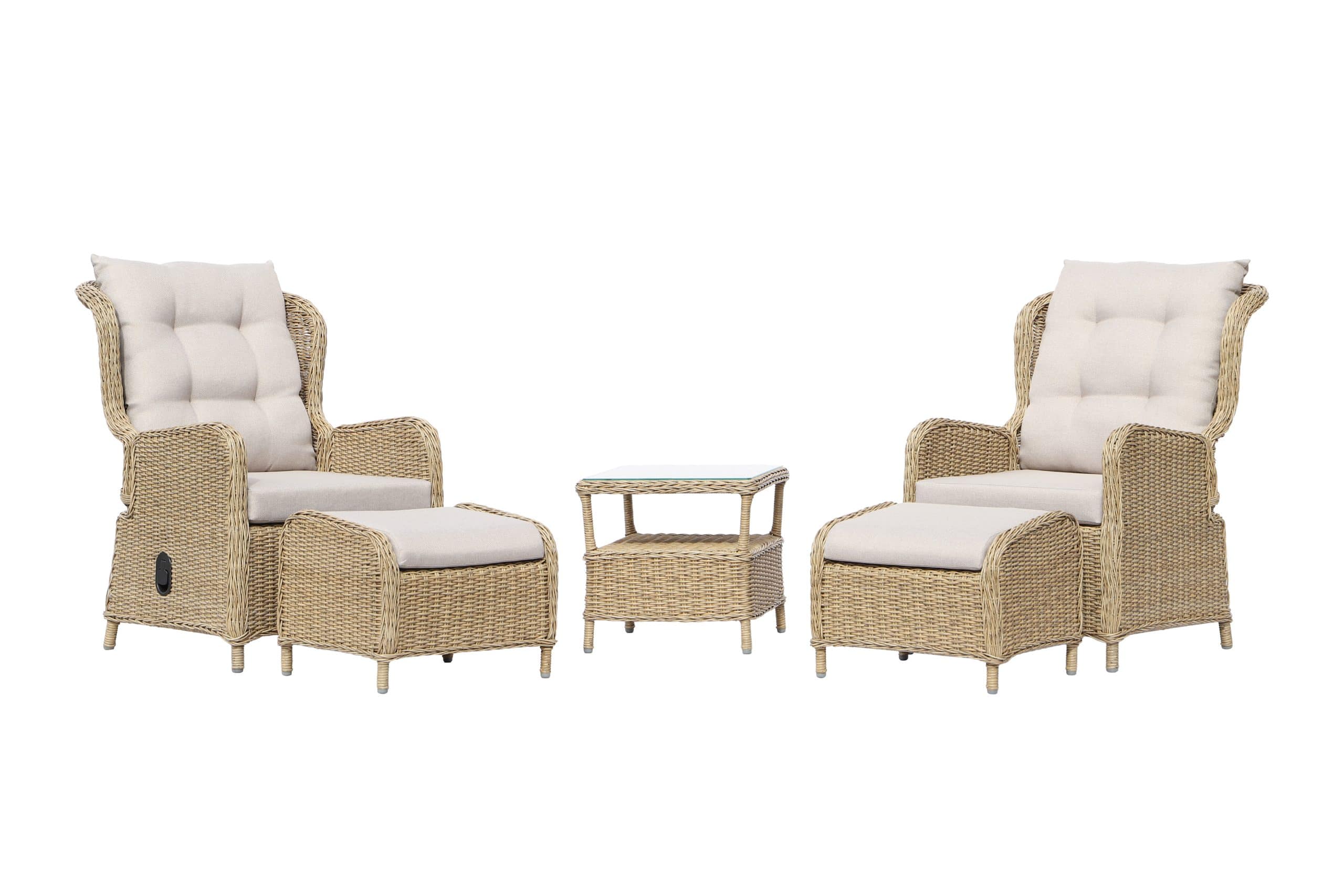 Luksus hyggesæt i polyrattan | Positionsstole, fodskammel og praktisk sidebord