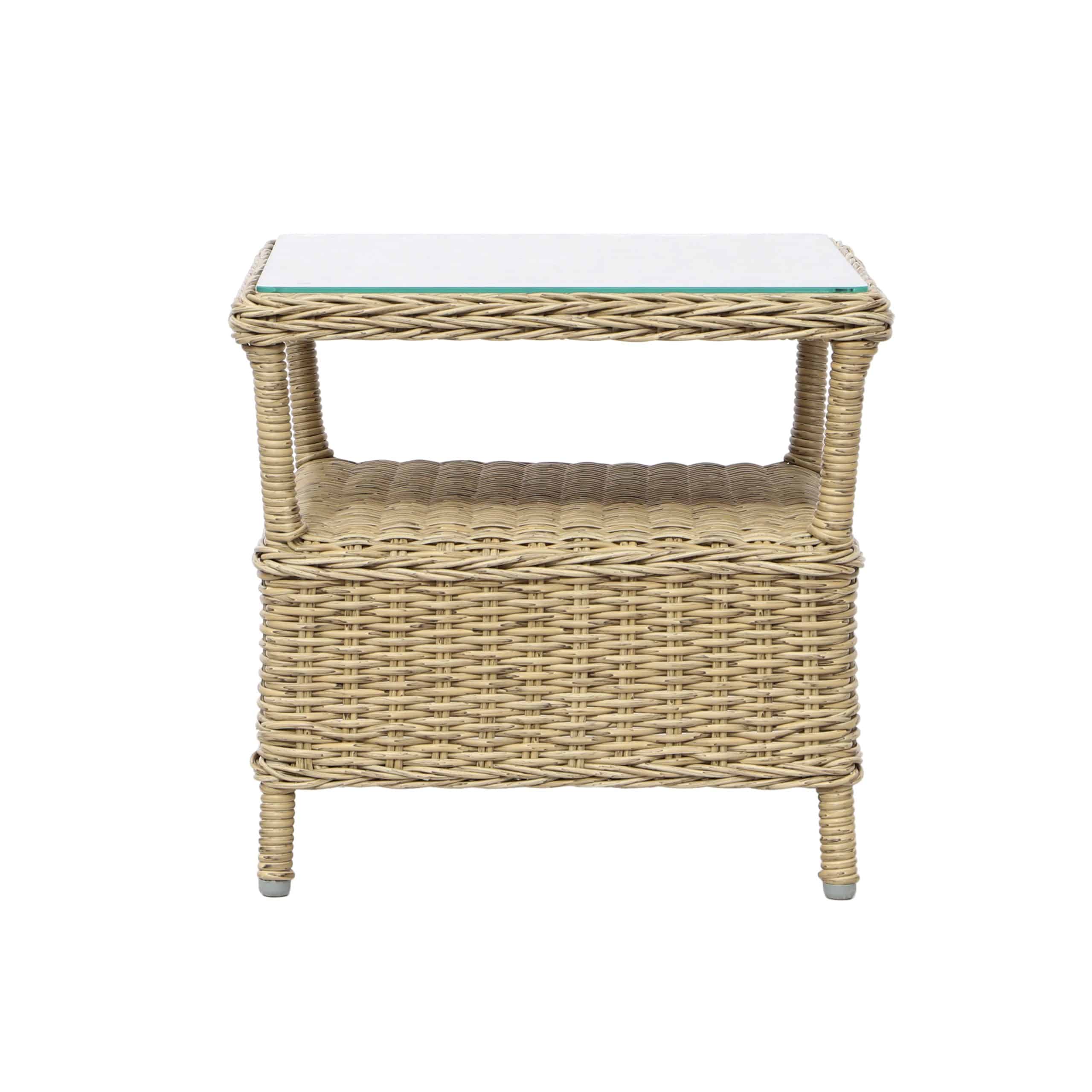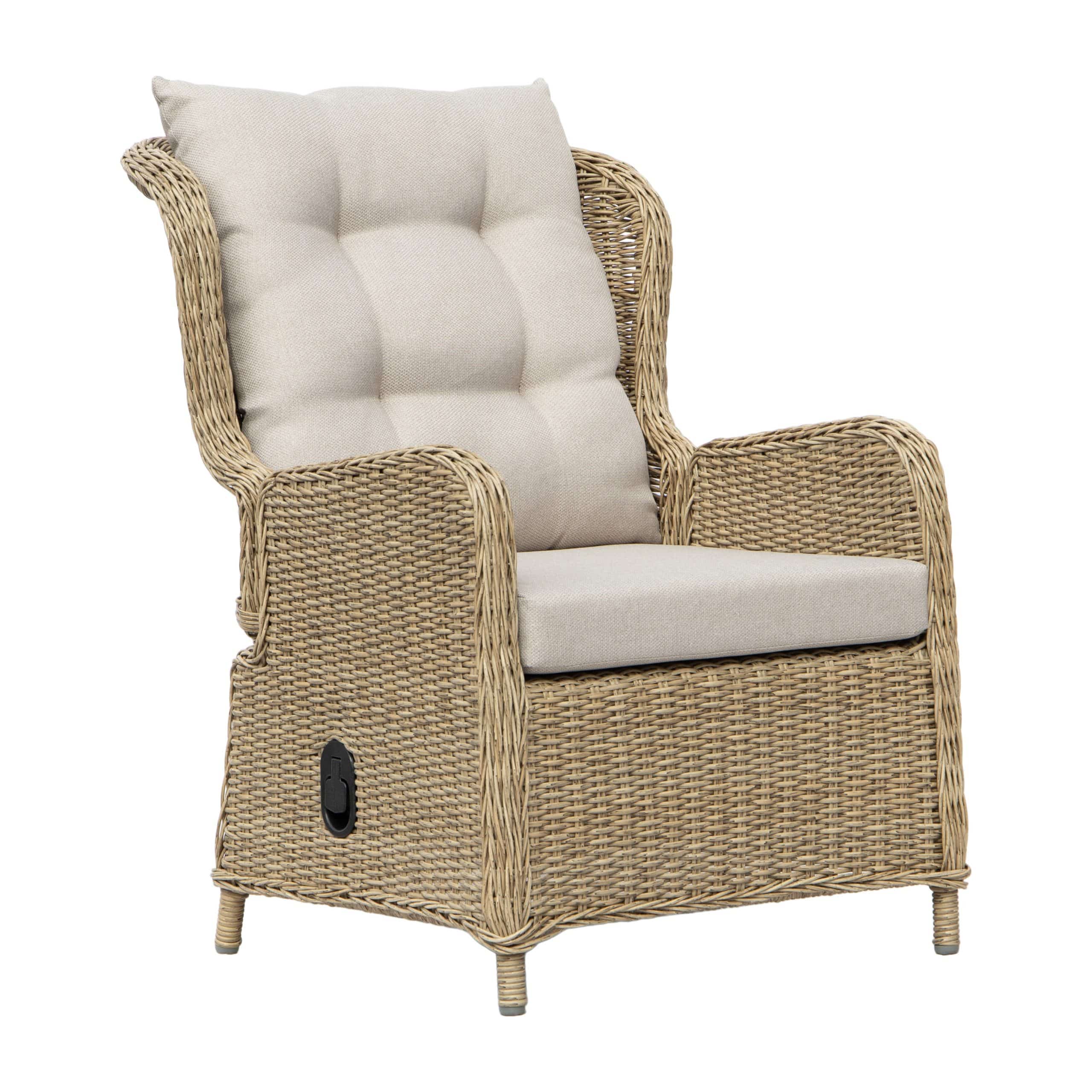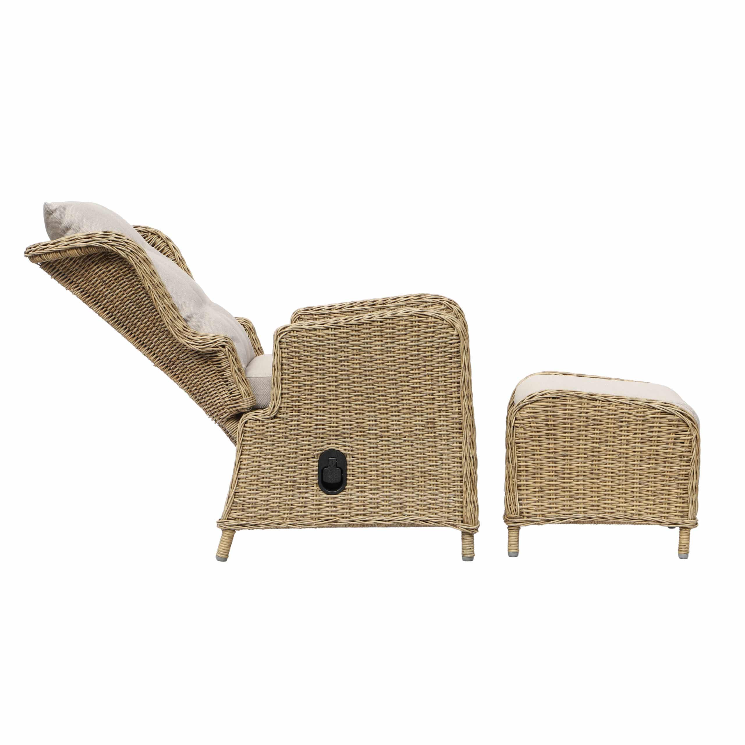 Luksus hyggesæt i polyrattan | Positionsstole, fodskammel og praktisk sidebord