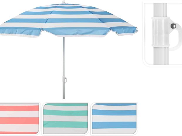 Strand parasol – Ø150cm – Blå-, grøn eller rød stribet