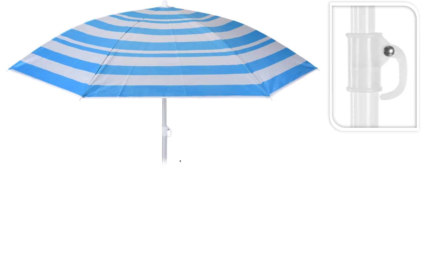 Strandparasol Ø178 cm UPF 50+ – Lyseblå Stribet