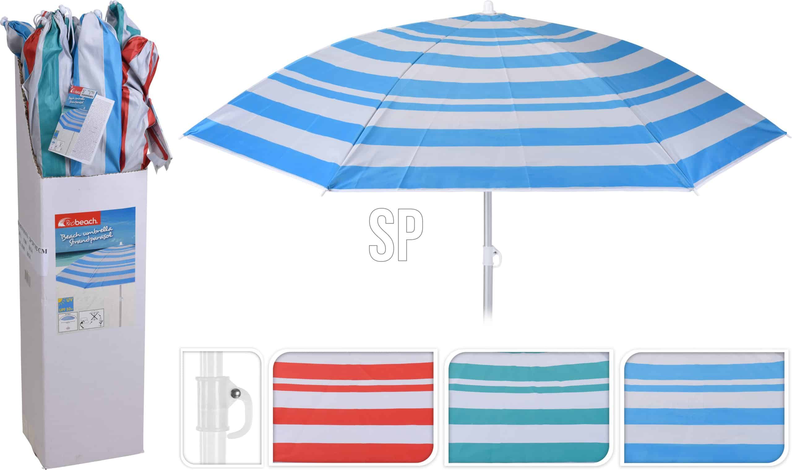 Strandparasol Ø178 cm UPF 50+ – Lyseblå Stribet3 på lager