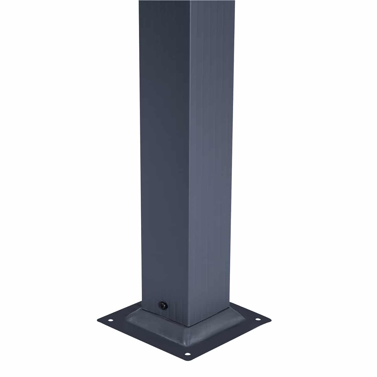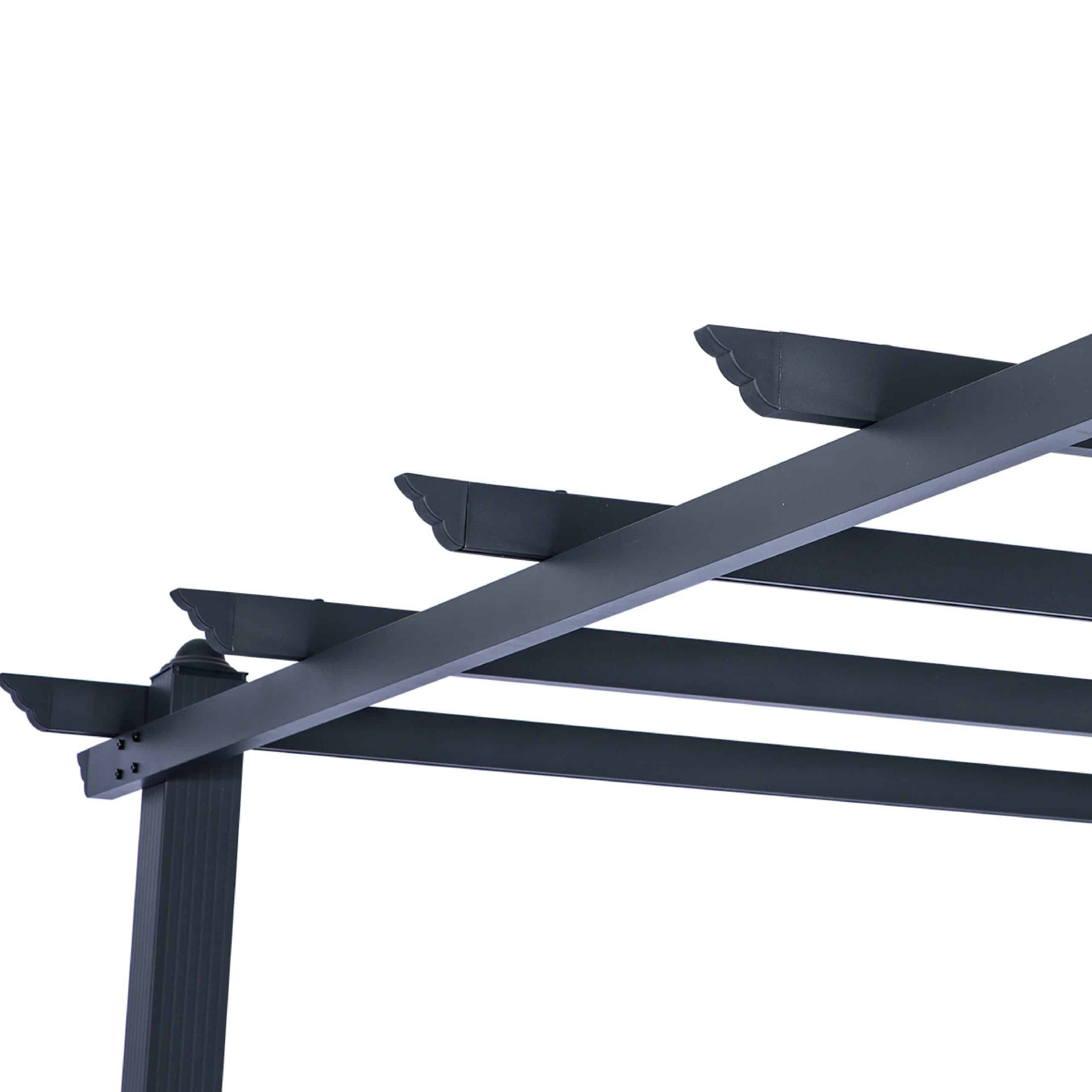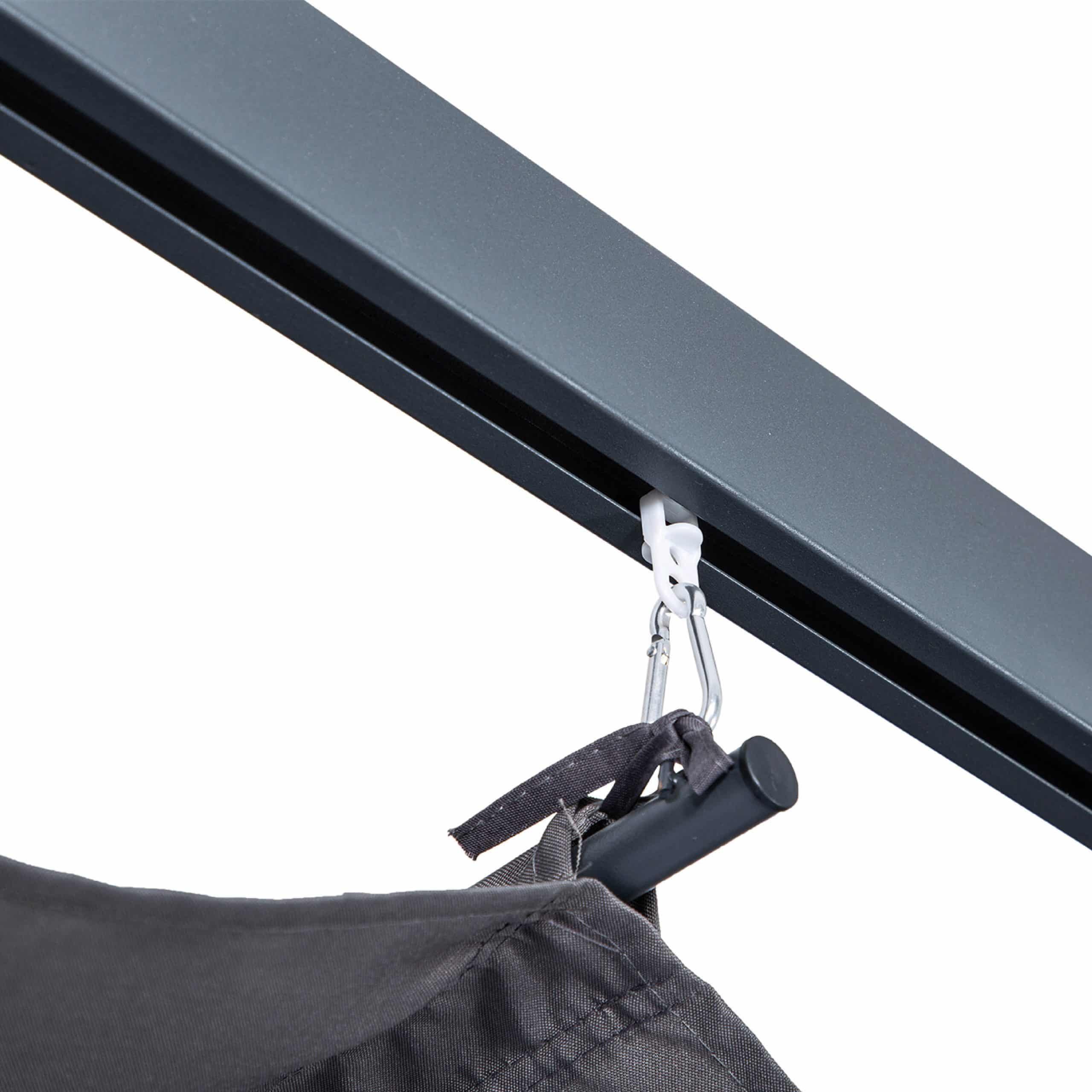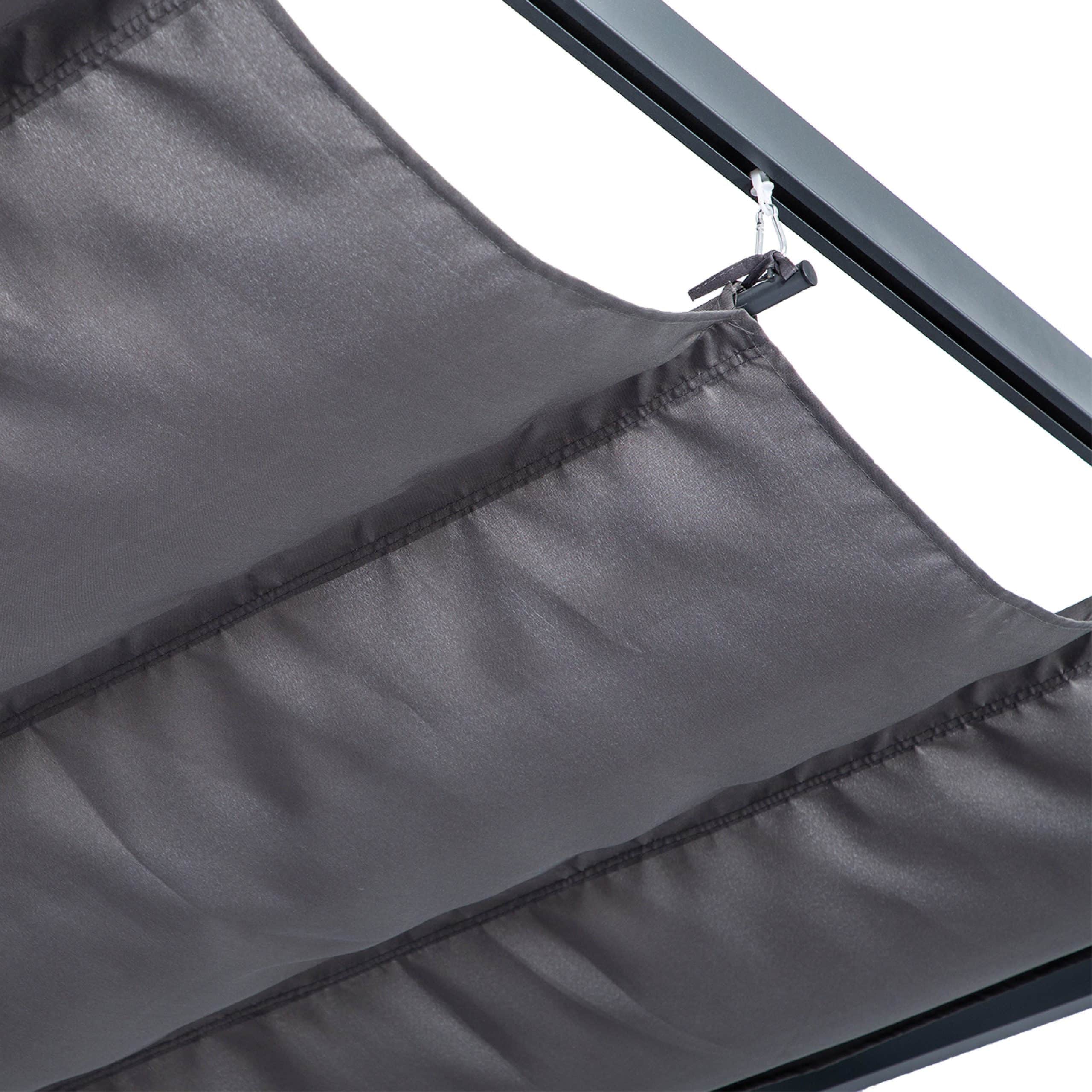 Valetta pergola med tag lavet af polyesterstof der kan trækkes ud efter behov og med et stel i gråt pulverlakeret aluminium. – perfekt til alle døgnets timer og vejrskift på terrassen eller i haven.